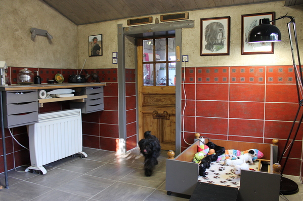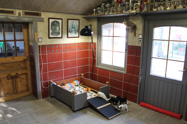 Nos chiens vivent tous ensemble en parfaite harmonie et en totale liberté (pas de cages,barreaux etc. encore moins en appart.) et partageant ainsi notre vie au quotidien .